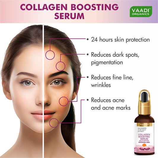 Multipeptide and 24K Gold Extract Collagen Boosting serum with Niacinamide|Radiant & Youthful Skin|Reduces Dark Spots| For All Skin Types| No Parabens , Mineral, Silicon|30ml