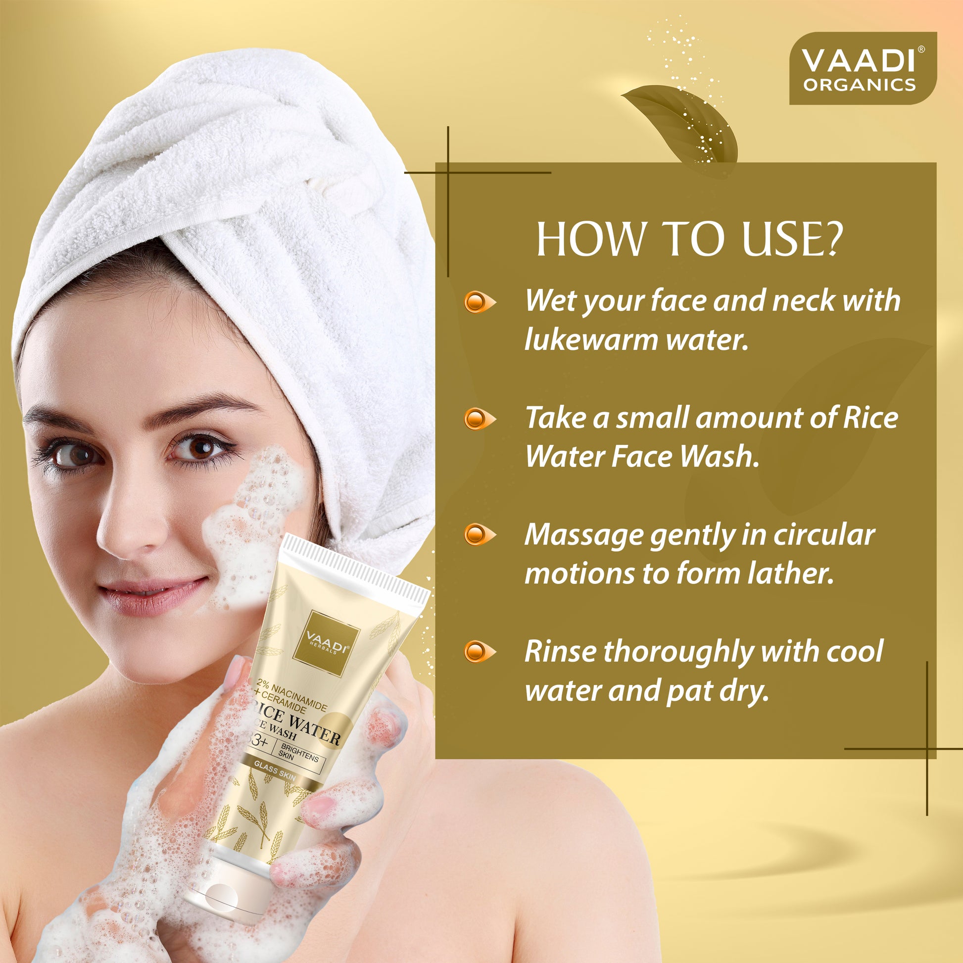 Wet face and neck with lukewarm water. Take a small amount of the face wash and gently massage in circular motions for 30–45 seconds. Rinse thoroughly with cool water and pat dry. For best results, use twice daily — morning & night .