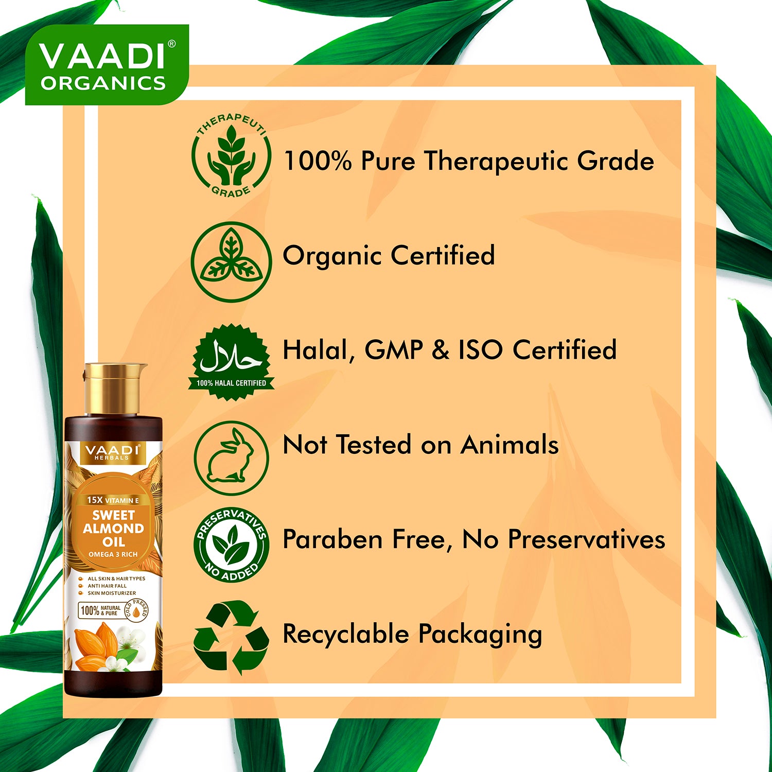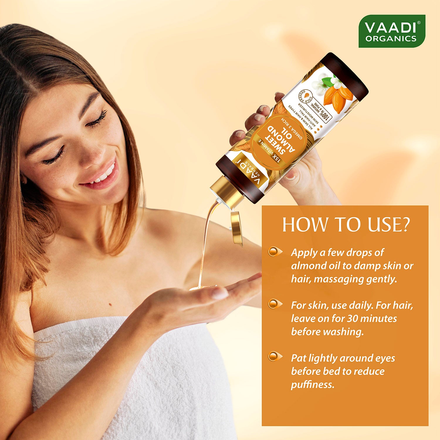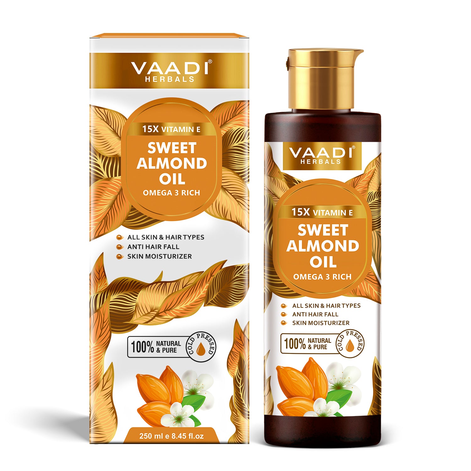 Cold-Pressed Sweet Almond Oil with Vitamin E - Anti Hair Fall - Removes Dark Circles- Skin Moisturizer-Promotes Hair Growth- 250ml
