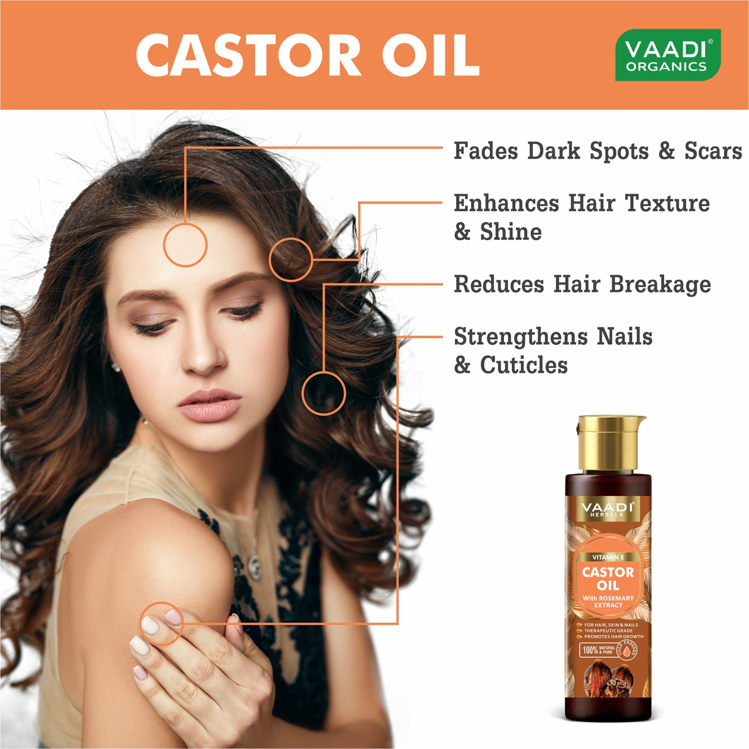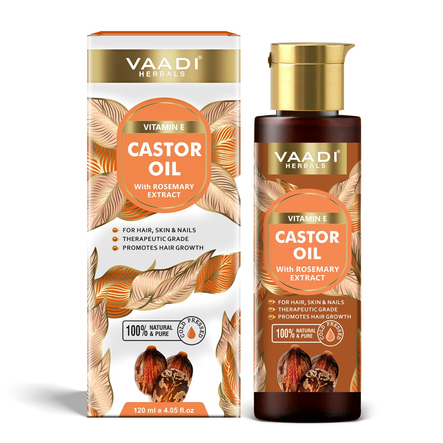 Cold Pressed Vitamin E Castor Oil with Rosemary Extract- For Hair, Skin & Nails- Promotes Hair Growth-Skin Hydrating-Strengthens Nails- Provides Shine-Reduces Hair Breakage-120ml
