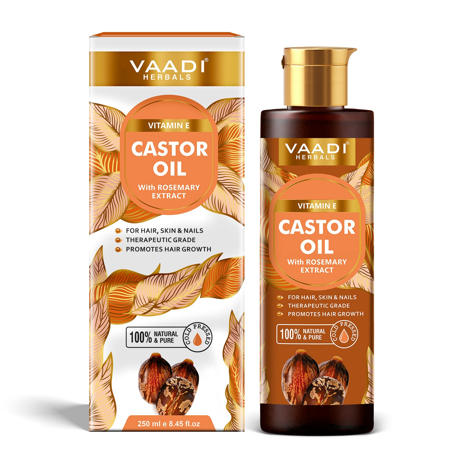 Cold Pressed Vitamin E Castor Oil with Rosemary Extract- For Hair, Skin & Nails- Promotes Hair Growth-Skin Hydrating-Strengthens Nails- Provides Shine-Reduces Hair Breakage-250ml