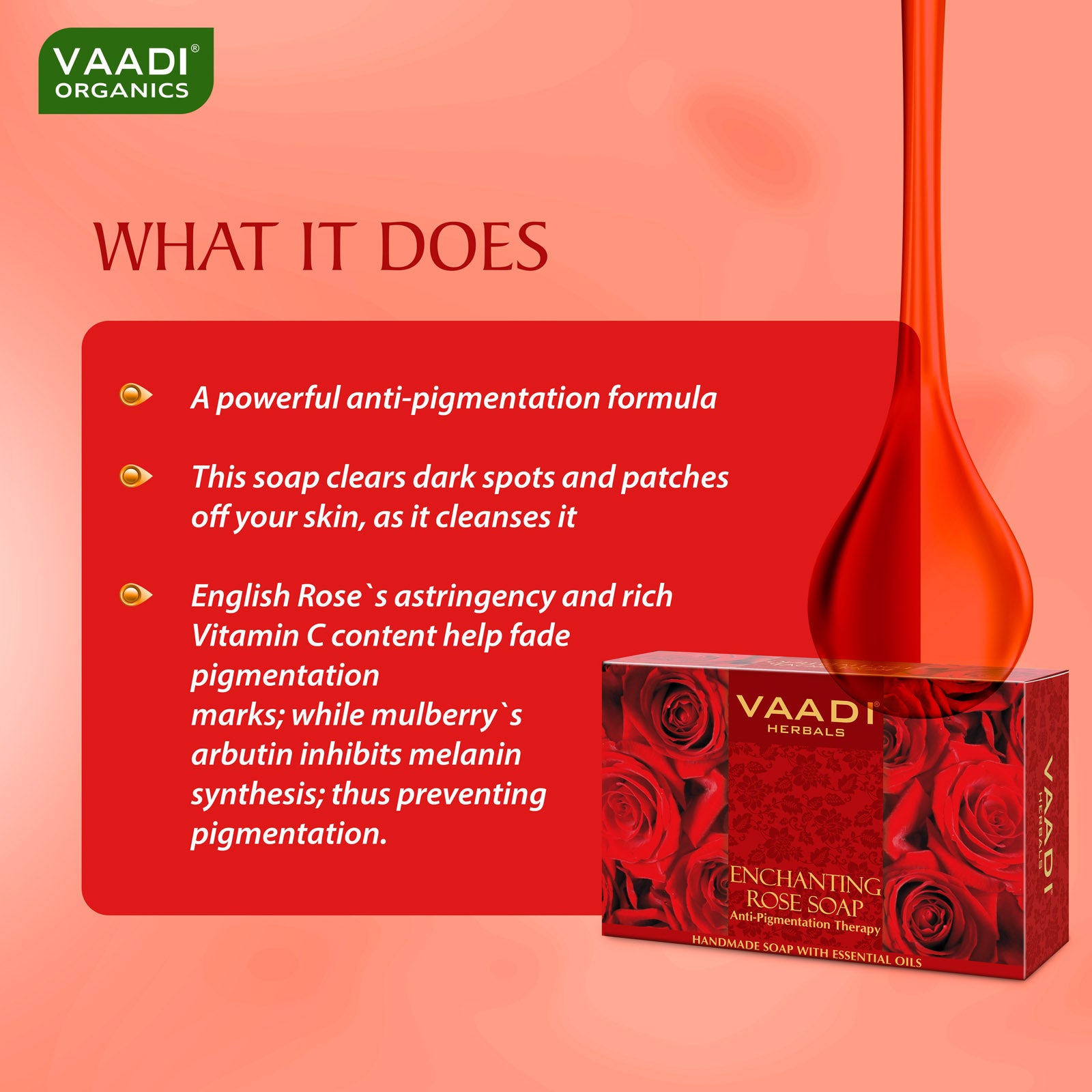 Vaadi herbals enchanting rose soap with mulberry extract is a very product. It keeps us cool in this hot summer and lightens the pigmentation in our skin. Worth buying this product.
